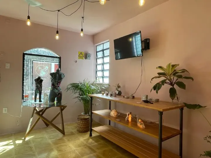 Con respecto al espacio, fue un proceso de remodelación del local (donde ya tienen otro negocio). Diana cuenta que la inspiración fue el art decó, que les llevó a elegir las tonalidades rosa y dorado. El resultado final es una tienda cálida, con plantas, muebles de madera y la iluminación vintage, que en conjunto invitan a entrar.